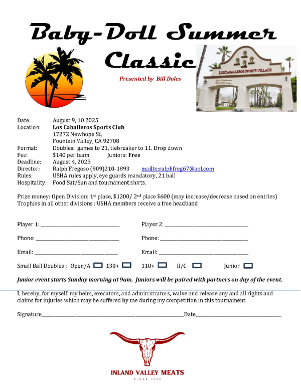 Small Ball Doubles: Open/A☐ 130+ 110+ B/C Junior
