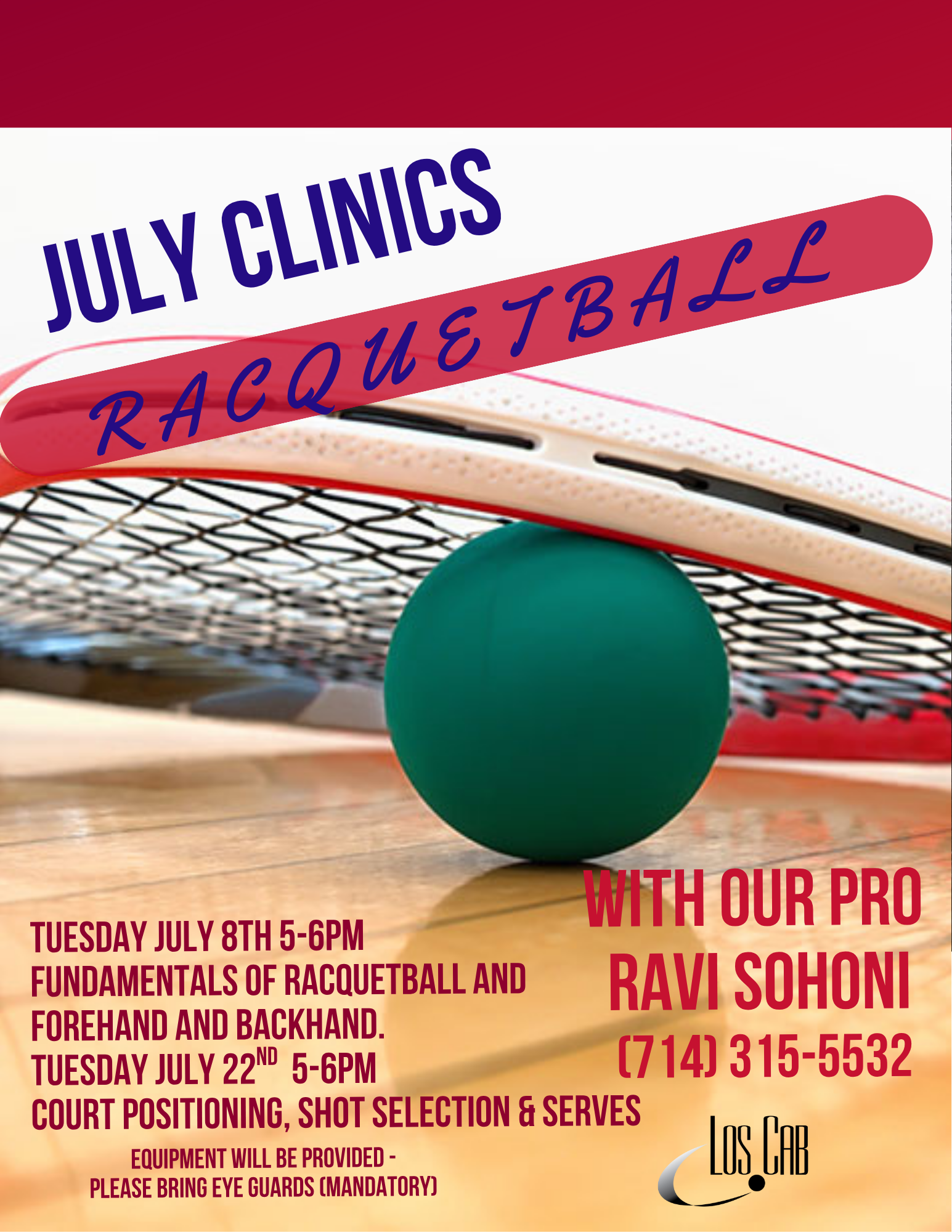 Racquetball Clinic – Court positioning and shot selection and serves