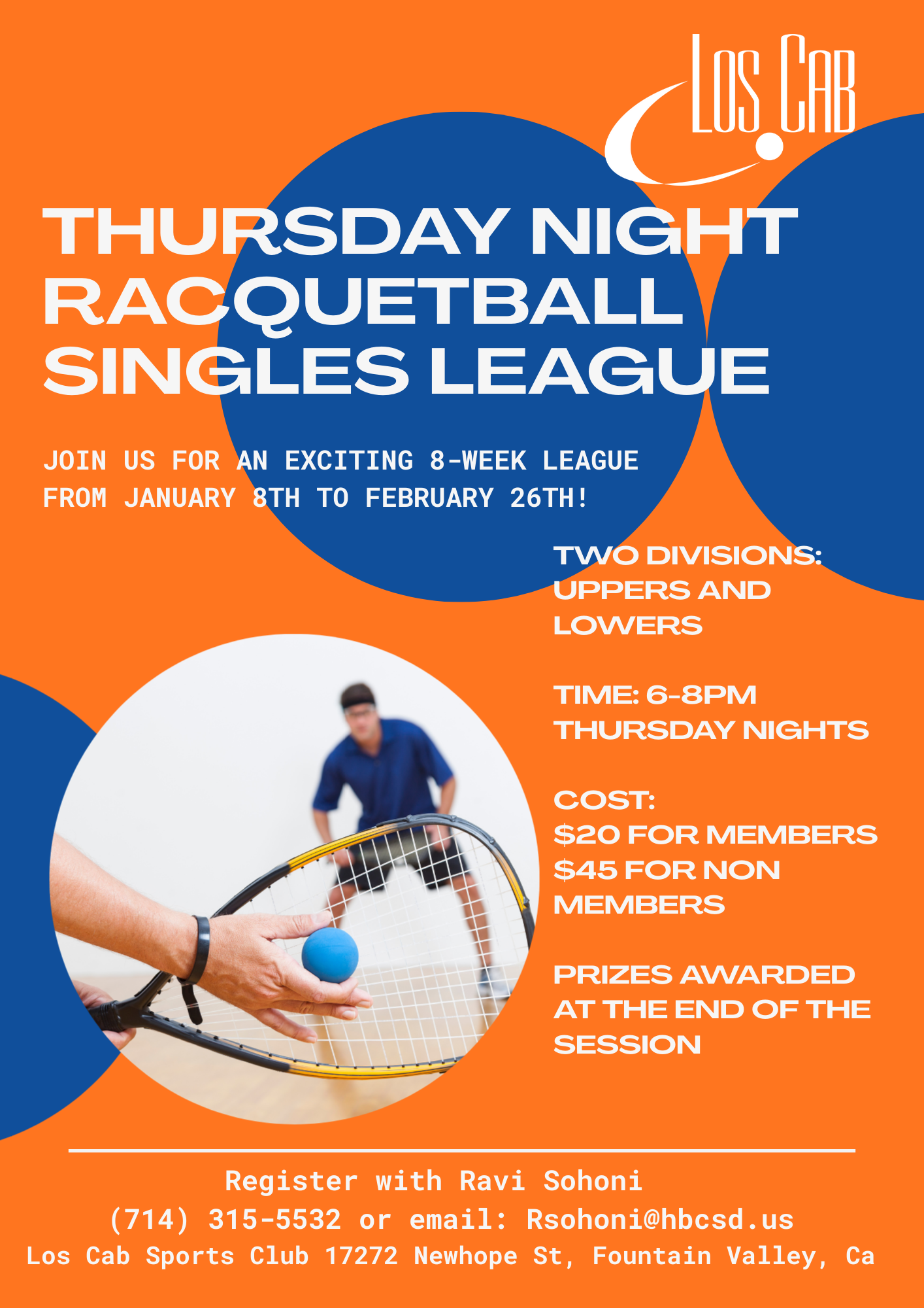 - More details on these events and contact info for our racquetball pro can be found on our website under Racquetball